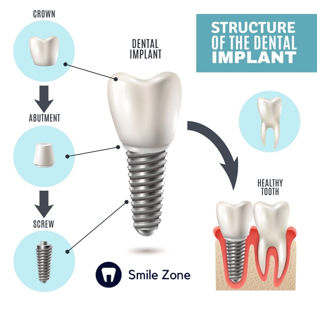 - Titanyum veya seramik yapıdan üretilen dental implantlar, diş köklerini taklit eden ve çene kemikleriyle biyouyumlu sentetik materyallerdir.